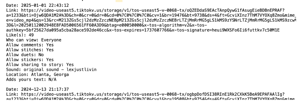 Your TikTok data dump will look like this.