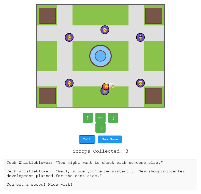 Big Technology newsletter writer Alex Kantrowitz created a lo-fi game using Claude’s artifact feature. Called The Journalist Game, play involves repeatedly questioning sources until you get their scoops. (h/t to Taylor Lorenz for the find)
