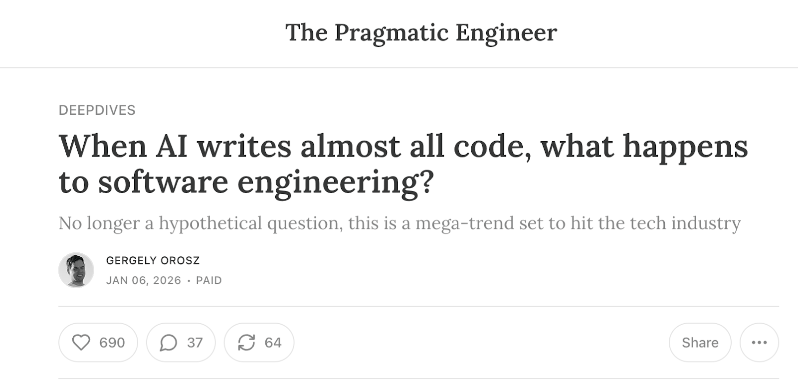 And then, a few weeks later, The influential Substack The Pragmatic Engineer riffed on Simon's take with a forward-looking piece that lays out what this might all mean for the software industry in day-to-day work product terms: