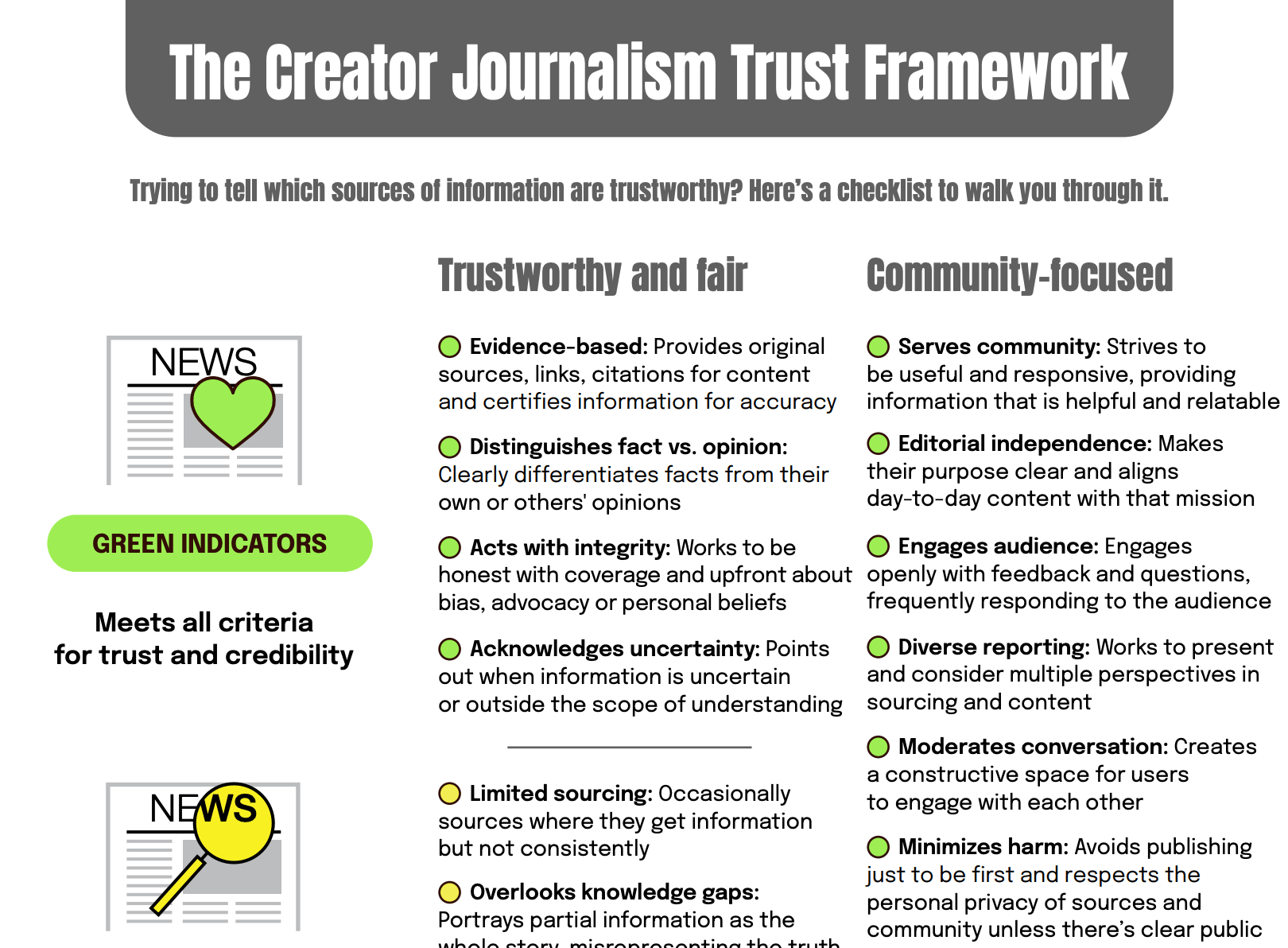 As news ecosystems evolve, we need frameworks like this that help connect, evaluate, and support creator-journalists with intention – whether that’s via grants, partnerships, or collaborative reporting.