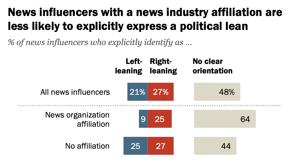 “It's roughly equal numbers of Democrats and Republicans saying that they get news regularly from new influencers,” said lead researcher Galen Stocking in a conversation last week.