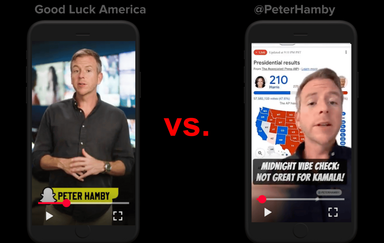An early experiment: Studio broadcast vs. Snapchat native. (Courtesy Ben Reininga)